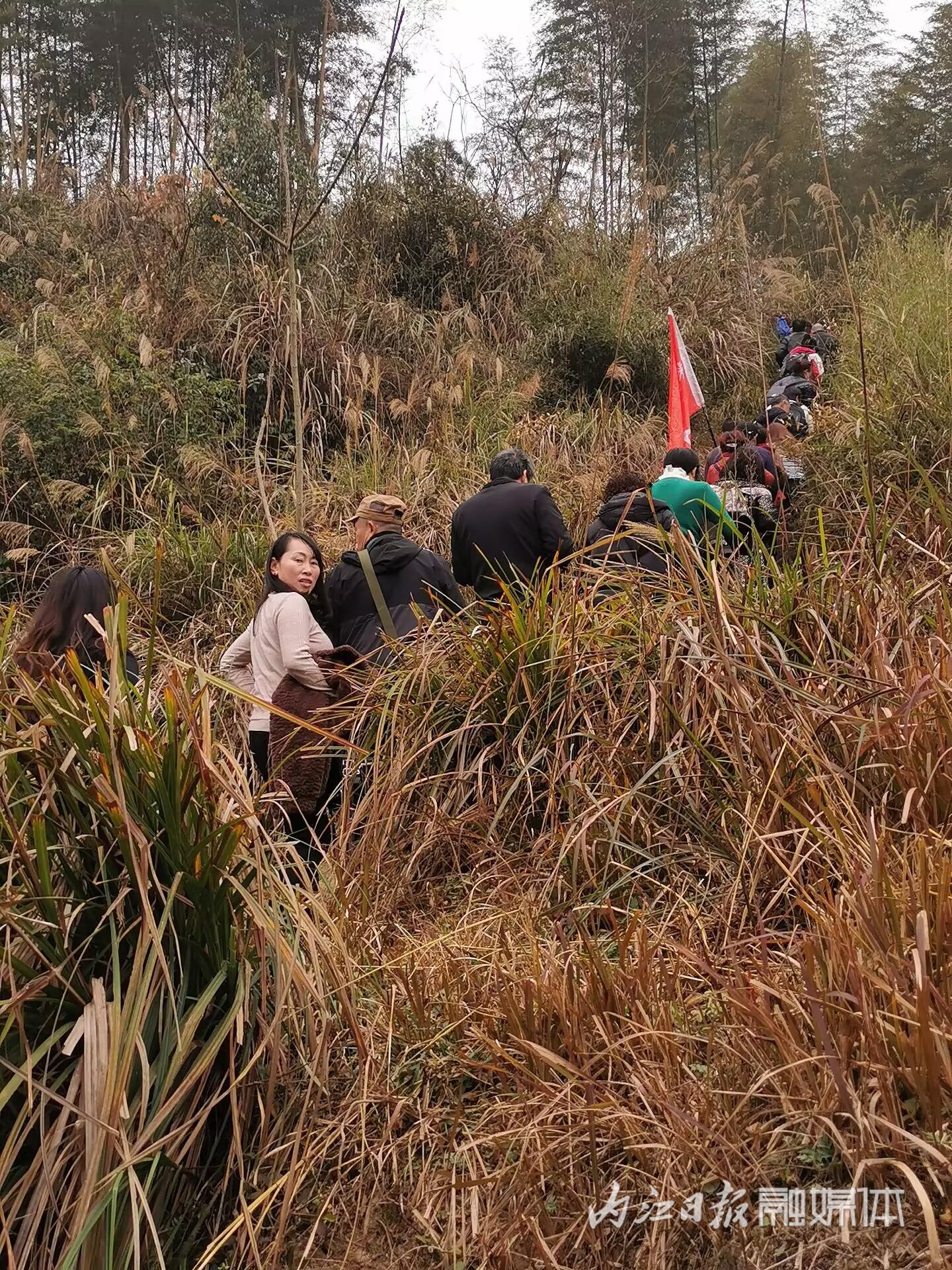 53名徒友一下车,或喜笑颜开地和久未见面的朋友打招呼,或踢腿伸腰深呼新鲜空气,或找一美景摆拍美照。终于,在群主的号召下,徒友们在长沙坝标志性的甬道拍了集体照,开始踏上当天的征程。