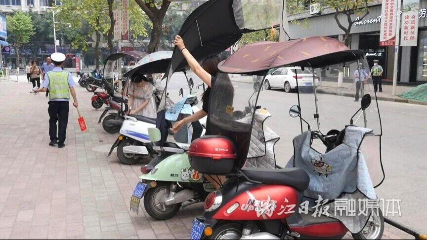 “遮阳伞会增加车身受风面积,行驶过程中容易失去平衡、倾倒,也容易刮伤过往行人,请拆除!” ……