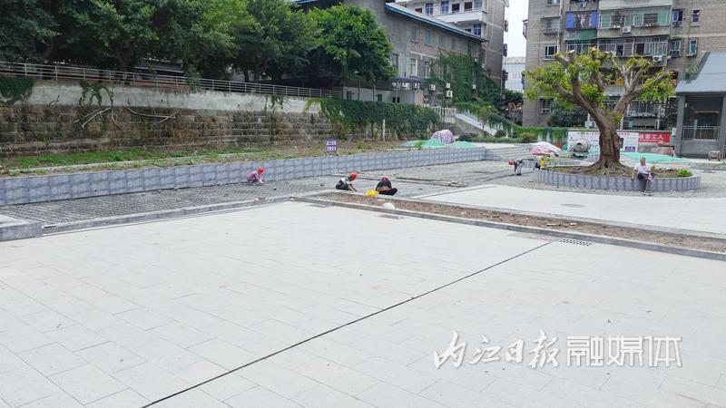 近日,记者在文化街48号师培中心看到,施工人员正在羽毛球场铺设钢筋,钢筋铺设完成后,花坛和羽毛球场将浇筑混凝土。