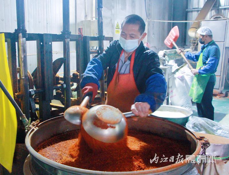 10月20日,在威远县高石镇稻渔果现代农业园区内,四川星麻哥食品有限公司的工人们正操作机械加工辣椒、花椒,一箱箱调味品在仓库内整齐堆放,工人们忙着将产品打包装车,运往全国各地的市场。