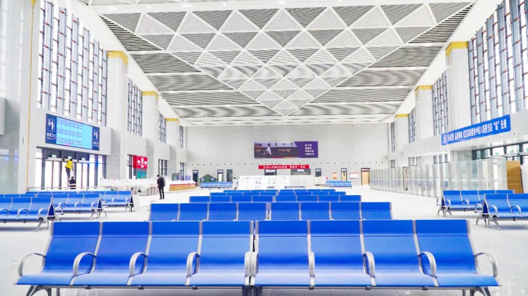 候车厅里,400余张崭新的座椅排列整齐,静候乘客的到来。