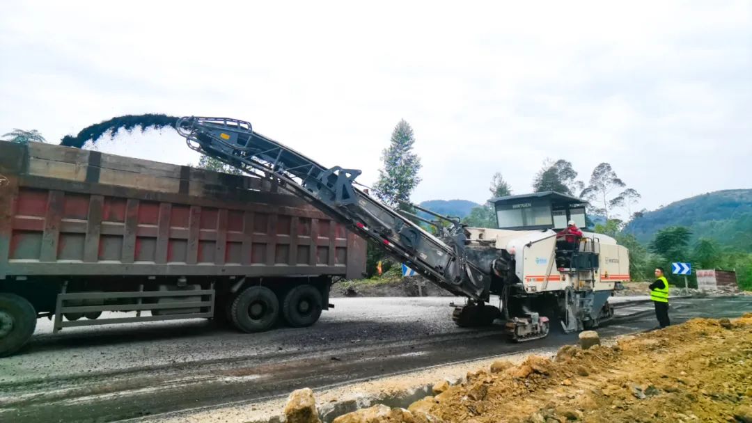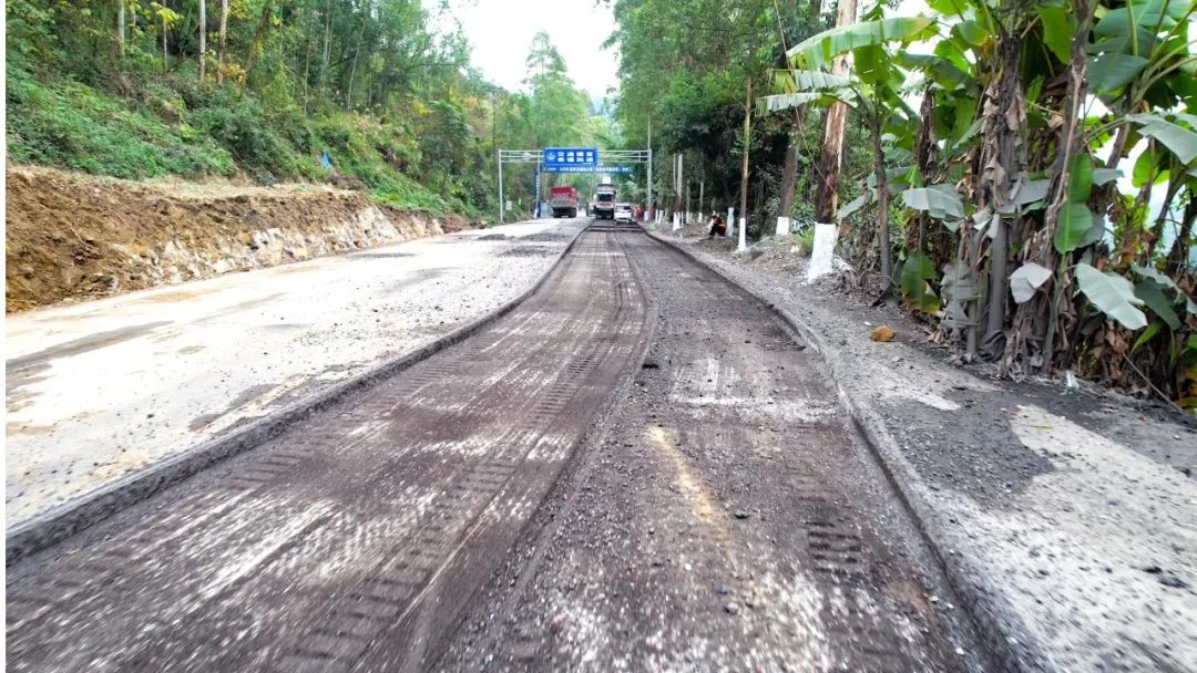 节点三在第三个大弯道处对路面进行改线,并修一道长74米,高4米的护面墙防止山体滑坡,目前路基基本完成。