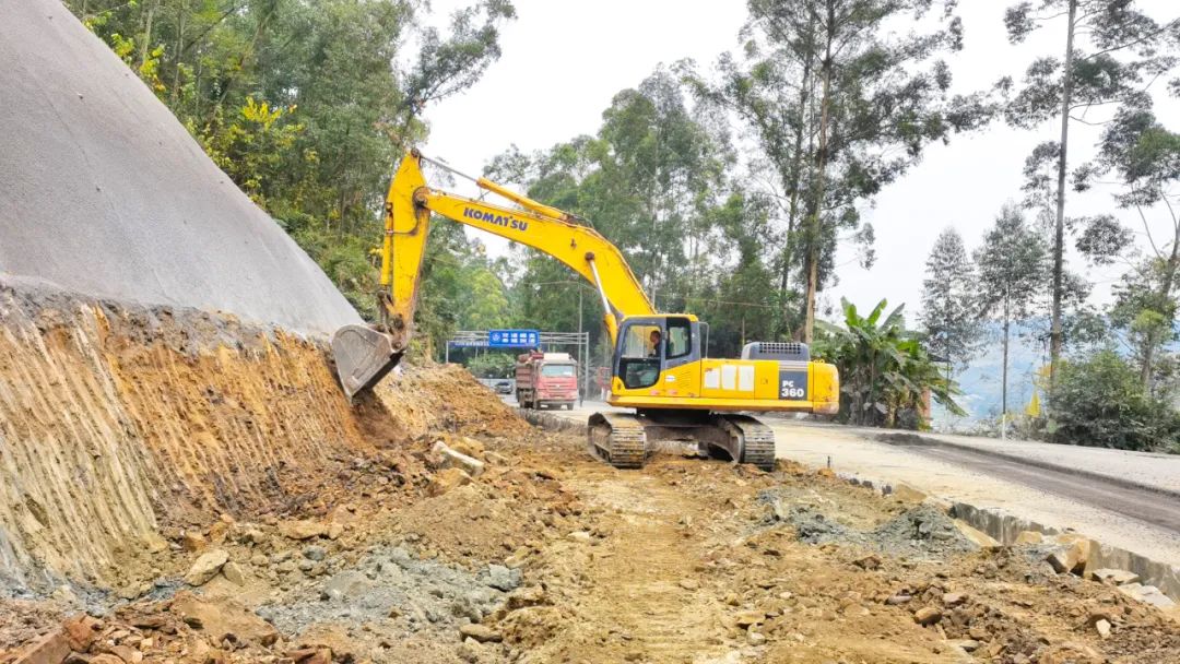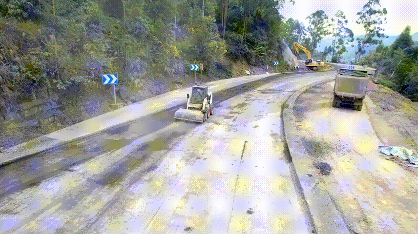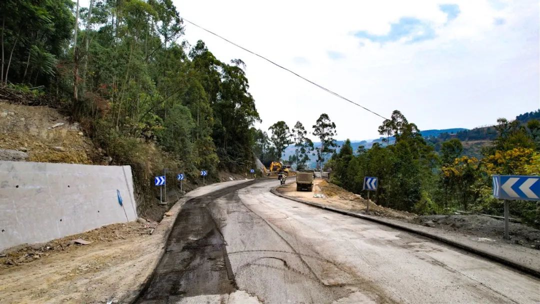 节点二是在第二个大弯道对路面进行改线,目前路基已基本全部完成。
