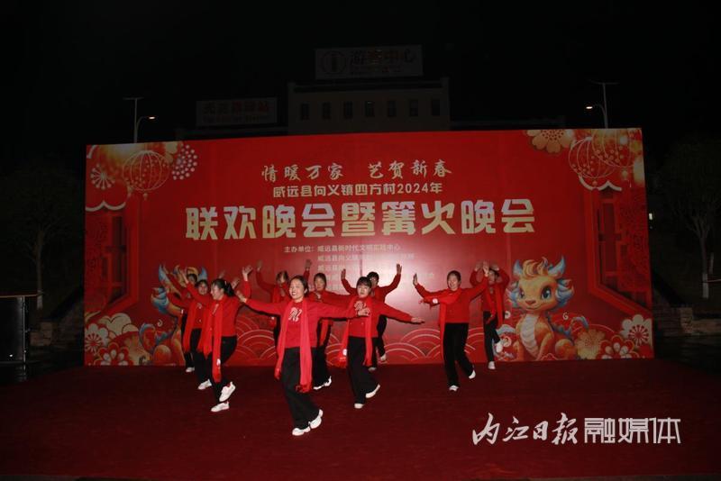 2月3日晚,全国文明村——威远县向义镇四方村的夜空被热闹与欢笑点亮,这里正举行“情暖万家·艺贺新春”联欢晚会暨篝火晚会,活动吸引了600余位村民共襄盛举。