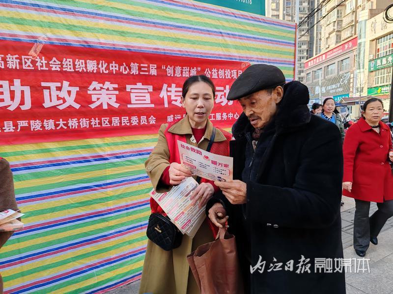 3月14日,威远县穹窿社工服务中心联合社区干部、社区志愿者,在严陵镇大桥街社区开展社会救助政策宣传活动。开展这次活动,旨在进一步扩大救助政策宣传广度和深度,强化社区居民尤其是困难群众的社会救助意识,保障困难群众“求助懂政策、受助能及时”。
