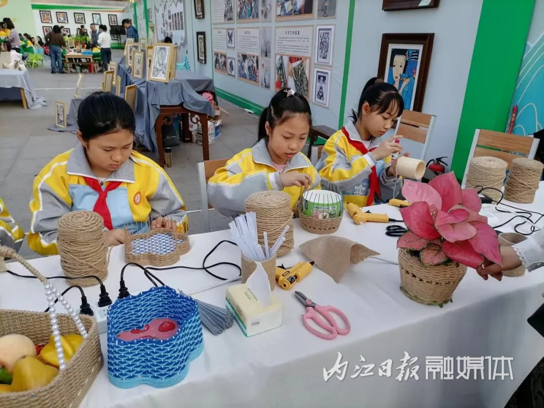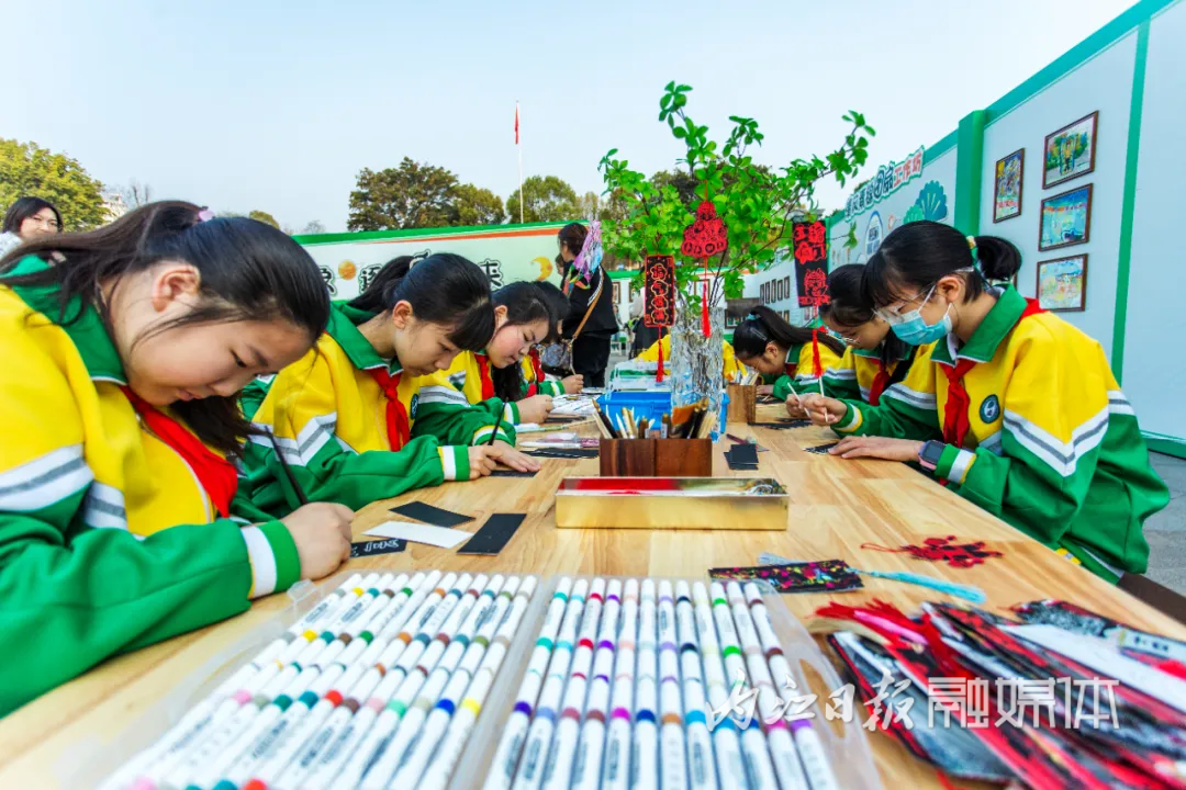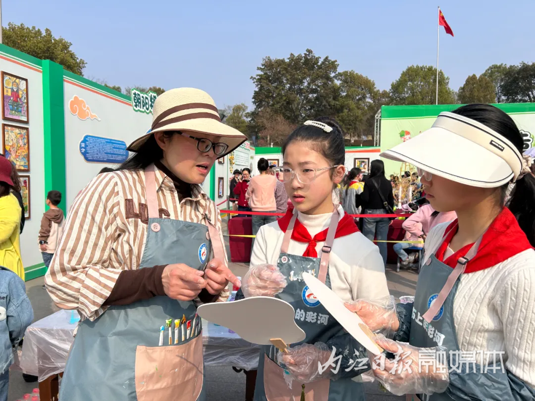 灵巧双手,创造美好。3月22日,威远县婆城公园广场热闹非凡,严陵镇中心学校及下属部分学校的10个特色工作坊将课堂搬到这里。每个工作坊的孩子都自信地展示课后服务艺术社团学习成果,周围挤满观众。小小解说员热情地向大家介绍学校特色工作坊,观众情不自禁地为这群爱学习、善思考、会动手、勇于创新的孩子点赞。参观的家长与小朋友纷纷体验,在小老师的指导下,沉浸在一个个魅力社团中。