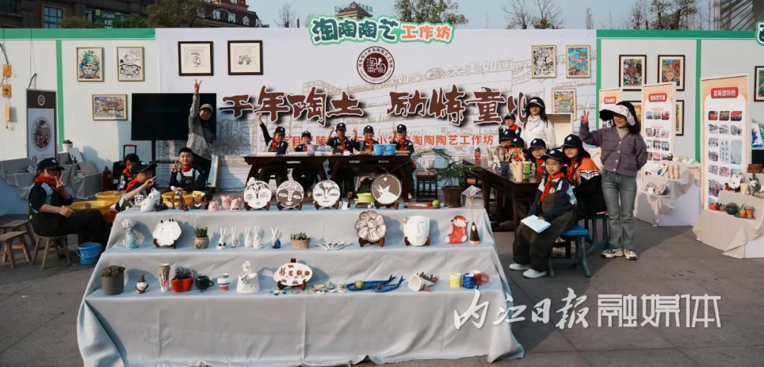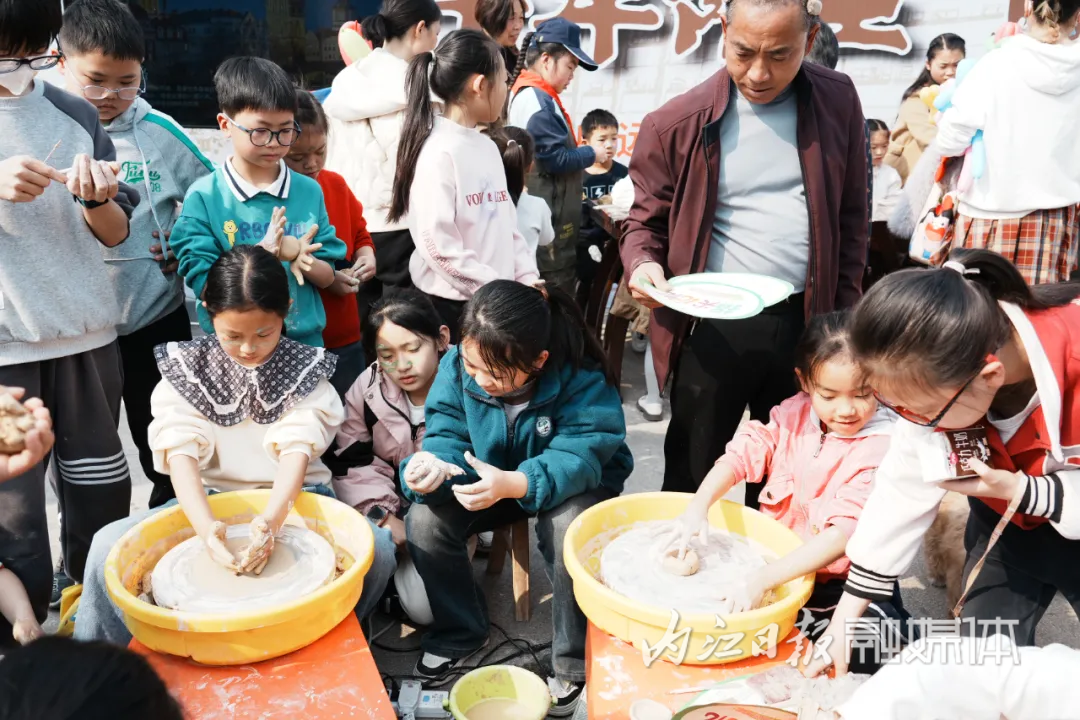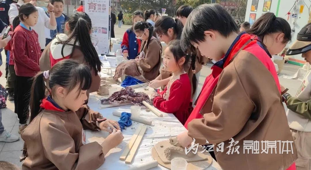 “育雅斋”泥塑工作坊以泥土为原料,一双双小手运用碾、压、搓、粘等制作手法,创作出人物、动物、风景、建筑等造型,激发孩子们对中国民间艺术的热爱和传承意识。