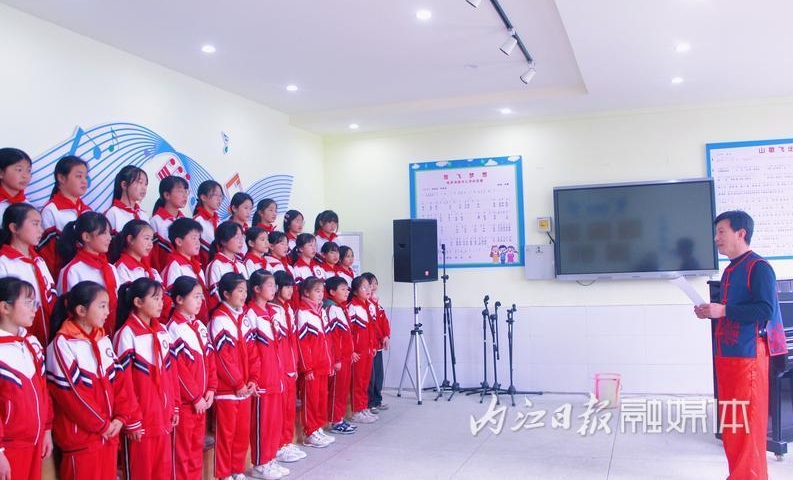 “太阳出来亮堂堂,家中有个读书郎……”3月26日,威远县观英滩镇中心学校合唱团教室传出嘹亮的歌声,石坪山歌第三代传承人孙传相带着新编歌谣,让学生们近距离感受省级非物质文化遗产的魅力。