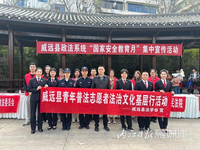 4月12日,威远县法学会策划并联合县委政法委、县法院、县检察院、县公安局、县司法局等县级政法单位,在弘正法治广场开展以“总体国家安全观·创新引领10周年”为主题的“国家安全教育月”集中宣传活动。