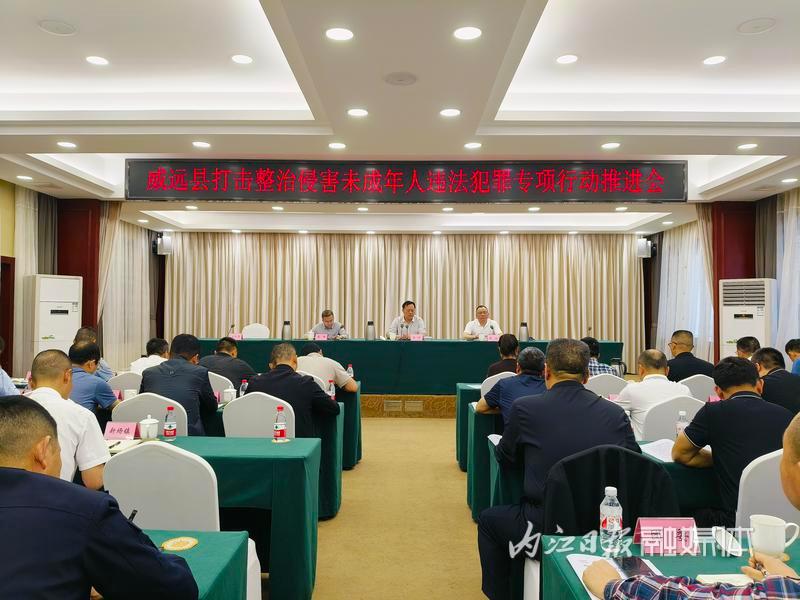 日前,威远县召开打击整治侵害未成年人违法犯罪专项行动推进会。县委常委、县委政法委书记廖快出席会议并讲话,副县长、县公安局局长卿波主持会议。县检察院党组书记李熙、县专项办成员单位分管负责同志、各镇党委政法委员参加会议。