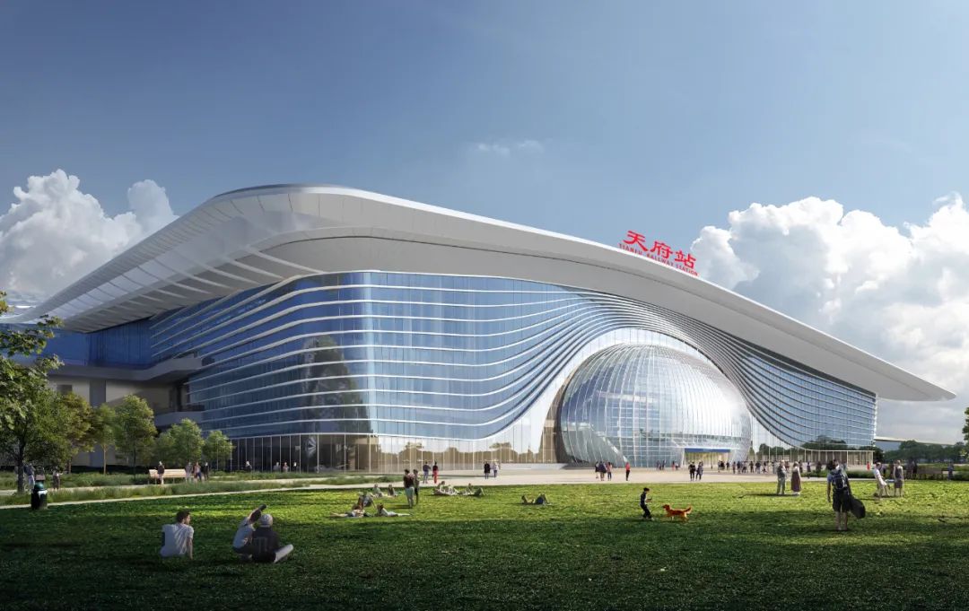 从兴隆湖出发,经科学城中路东段,往太平街道方向一路向东,大约12公里、20分钟的车程,便看到了这座四川省内面积最大的铁路站房——天府站项目。