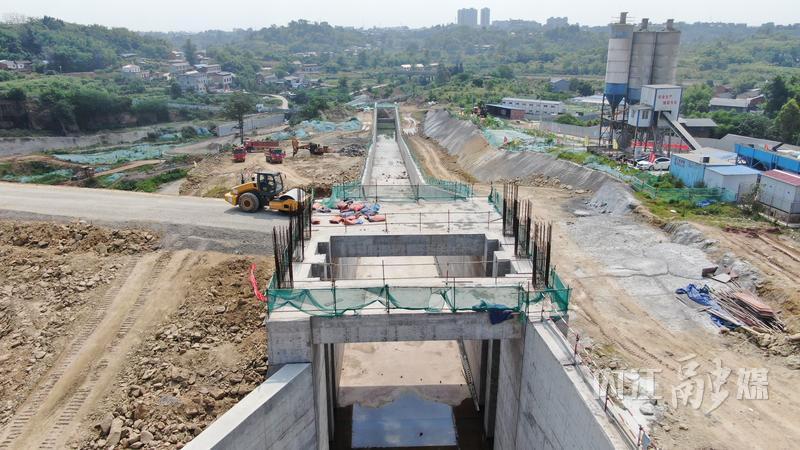 目前,进口闸墩和混凝土副坝已全部完成,溢洪道已完成93%,全面建成取水(放空、导流)洞255米,护岸工程完成60%,高速公路路基及库尾低洼区防护工程完成77%,右岸泵站完成主体施工。