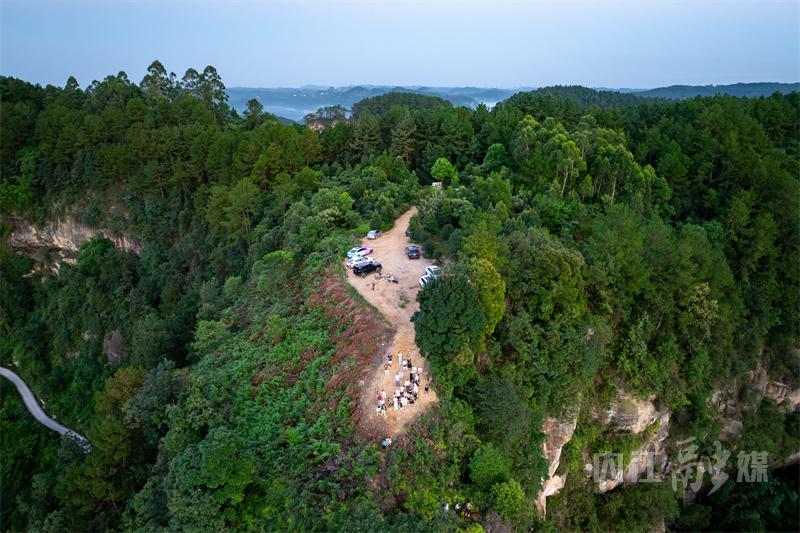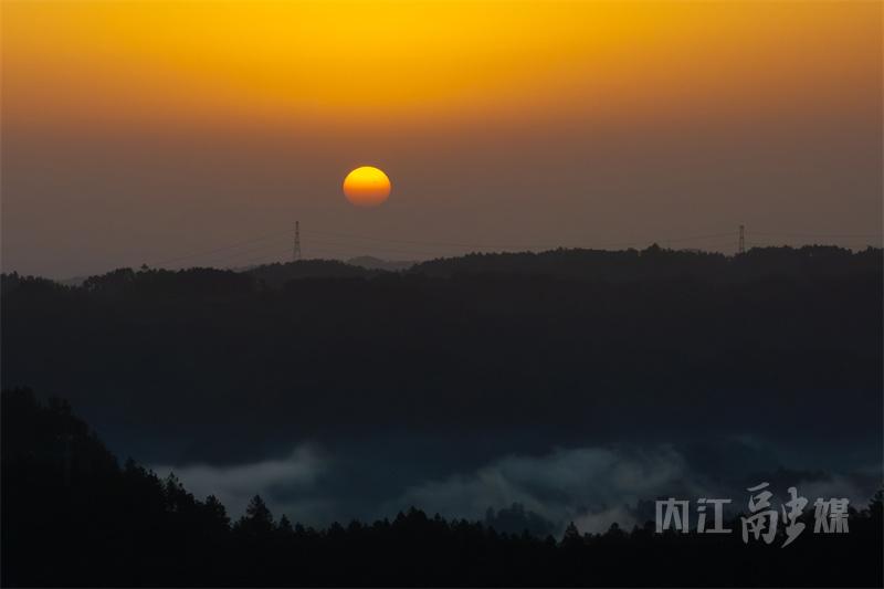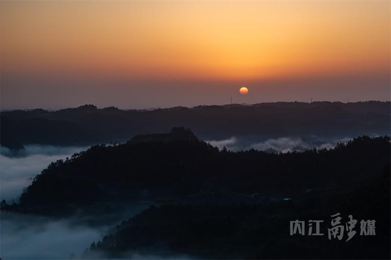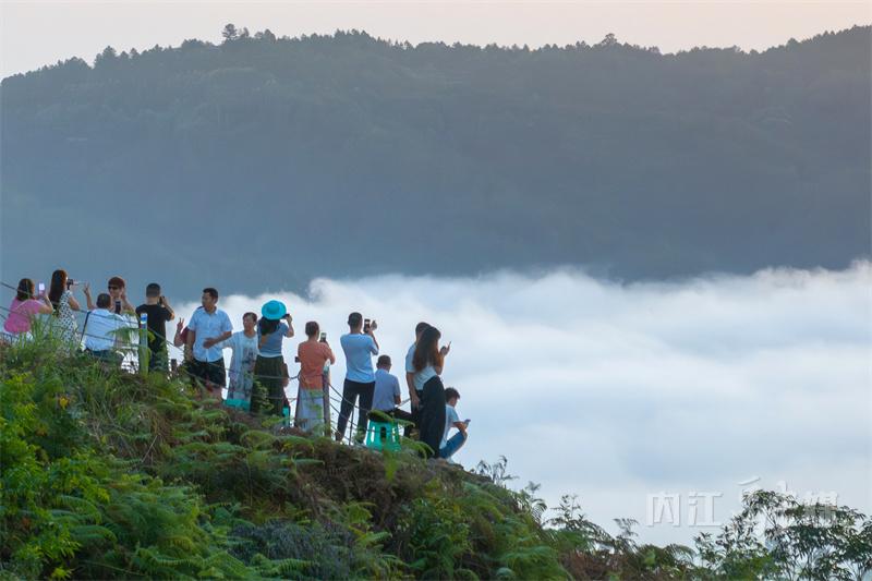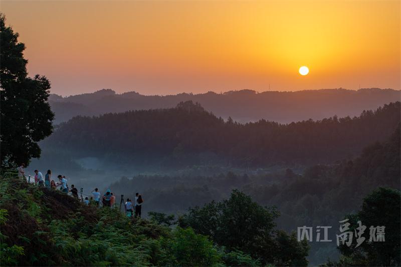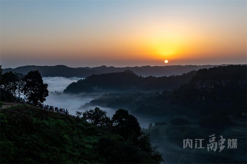 8月12日,内江市威远县观英滩镇骑龙村,游客们在观赏日出、云海景观。