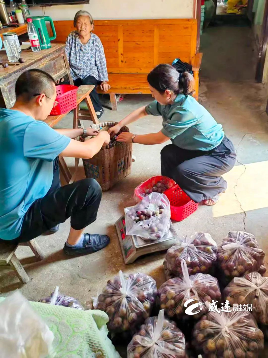 近日,威远县新场镇政府内响起了叫卖声,仔细一听,原来是驻村领导便民服务中心主任林荣茂和驻村干部邝华在各个办公室推广卡房村的特产——甜脆李。