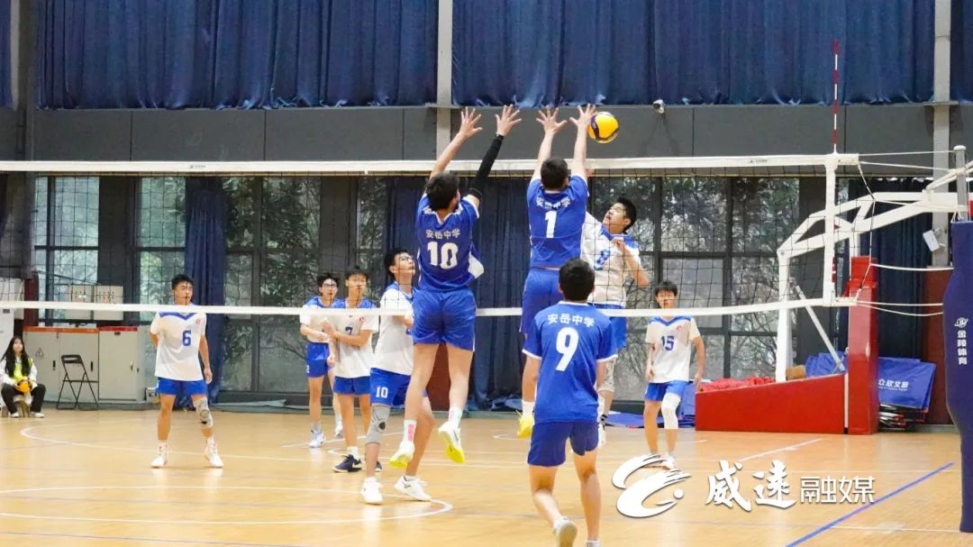 男子组比赛现场,自贡蜀光绿盛实验学校对战宜宾市第二中学校。随着哨声吹响,排球被高高抛起,双方球员积极寻找机会发起进攻,起跳、传球、扣球,力量与速度在竞技中爆发。最终,蜀光绿盛实验学校抓住对方漏洞,拿下比分,获得了本场比赛的胜利。
