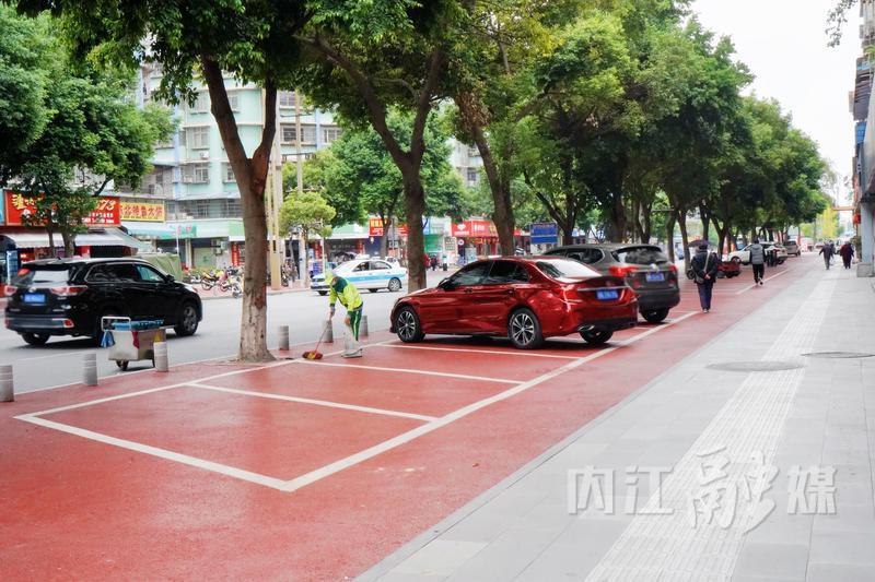 在城区商业三街,黑化后的道路更加平整、美观,施划的标线更加清晰;同时,在车行道两侧,在不影响行人通行的前提下,经过合理规划新增了停车位,设计150多个标准停车位,在出口处还设置了13处电瓶车停放点并配备道闸。