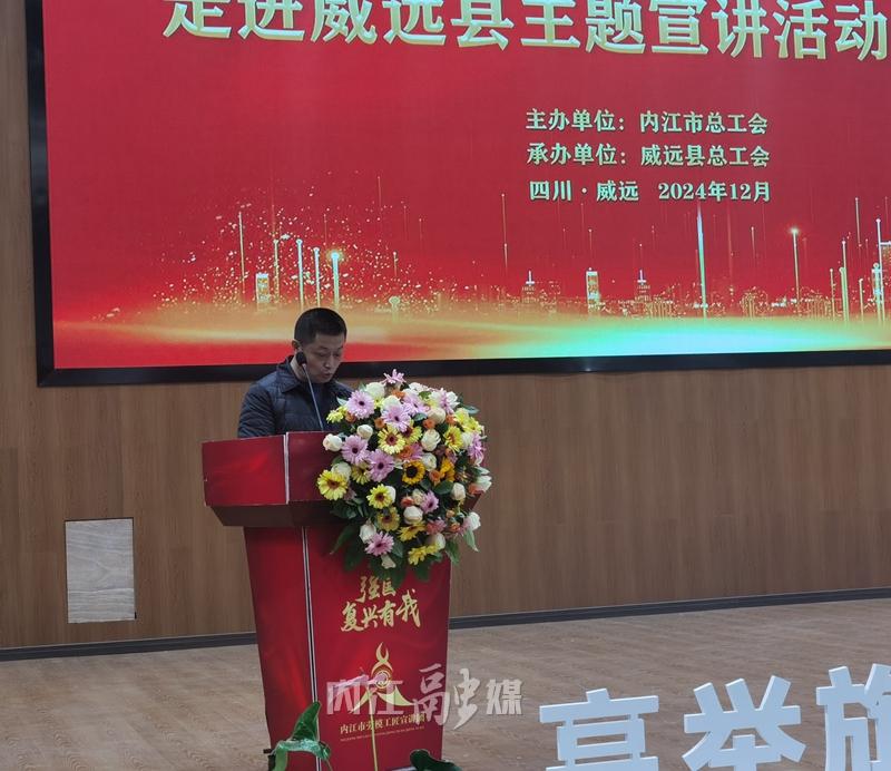 随后,威远县总工会党组书记、常务副主席黄忠致辞,他深刻阐述了此次宣讲活动对于推动广大教职工树立正确价值观、追求卓越成就的重要作用,并鼓励大家以劳模工匠为榜样,在各自的道路上奋勇前行。