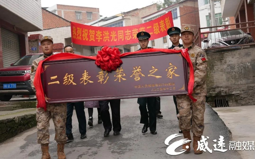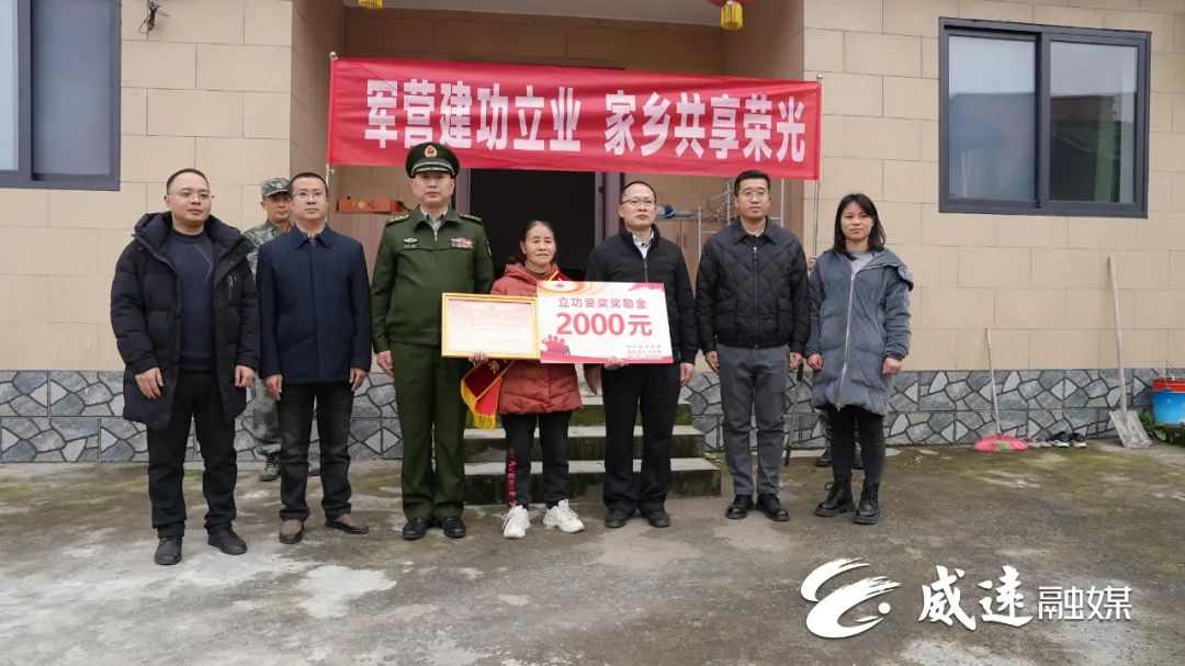 近日,威远县人武部、县退役军人局、中国人民解放军有关部队及严陵镇、高石镇有关人员开展了“军营建功立业,家人共享荣光”集中送喜报活动。