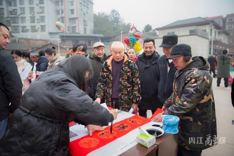 这边迎春文艺演出进行的同时,在广场的另一边,威远县政协诗书画院喜迎新春福到万家文化惠民活动同步热烈开展,雅致的国画、数百副春联为群众提前送上新春的祝福与温暖。