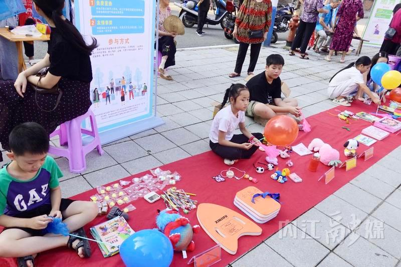 闲置物品置换区,孩子们有的抱着闲置的书籍,有的把玩具摆放整齐,稚嫩的叫卖声格外响亮。“我已卖了16元,最贵的玩具