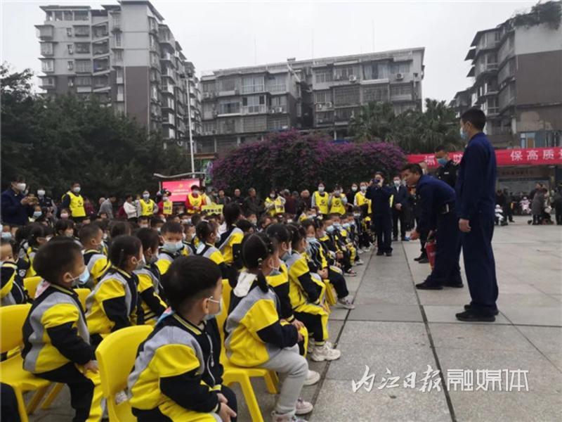 活动还邀请了资中吉欧幼儿园的小朋友现场观摩学习灭火演练。考虑到孩子们年龄小、接受能力较弱的现状,工作人员转变宣传方式,采用现场观看、提问互动的方式吸引孩子们的注意力,让他们从小树立消防安全意识。