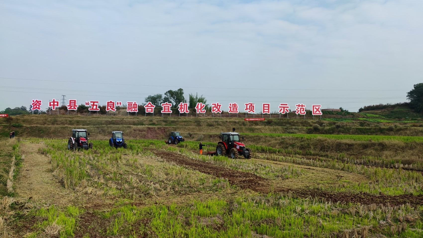 资中县公民镇是省县共建“五良”融合宜机化改造项目省级样板区所在地,在去年完成了土地宜机化改造。“这里有一个重要使命,就是探索应用更适合四川丘区农业作业的机械设备。”内江市农业农村局副局长郭曦介绍,去年这块地尝试了无人机飞播,虽然效率较高,但是播种的深度偏浅,种肥损耗偏多,今年选择了由省农业机械研究设计院开发的新型播种机。