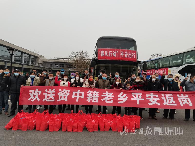 1月25日,农历正月初四,资中县首趟返岗复工大巴载着42名农民工,出发前往深圳龙岗。