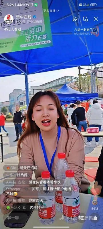 “我今天刷抖音正好看到在直播招聘,就报了觉得适合我的工作,然后与联系人相约面试事宜,太方便了!”一名资中市民表示,通过直播,可以与企业进行线上沟通交流,非常方便。