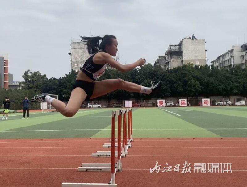 径赛场上,有100米短跑的瞬间爆发,有3000米的耐力比拼,也有体现合作精神的4×100米接力赛。运动员们在赛场上生龙活虎、奋力争先、不断超越。高中组女子100米栏决赛中,资中一中的陈绘伊表现抢眼,伴着枪声,她似离弦之箭,带着必胜的信念,冲出、奔驰,最终以打破县运动会纪录的成绩获得冠军。