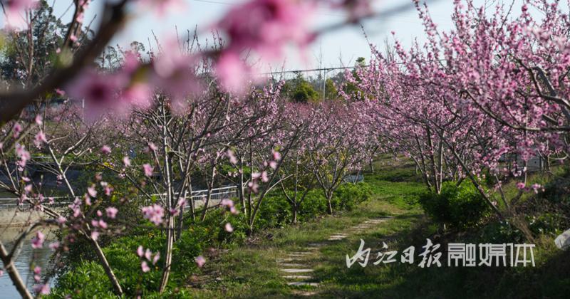 桃之夭夭,灼灼其华。近日,位于资中县孟塘镇梨园村的200多亩桃花竞相绽放,吸引不少游客慕名去打卡。