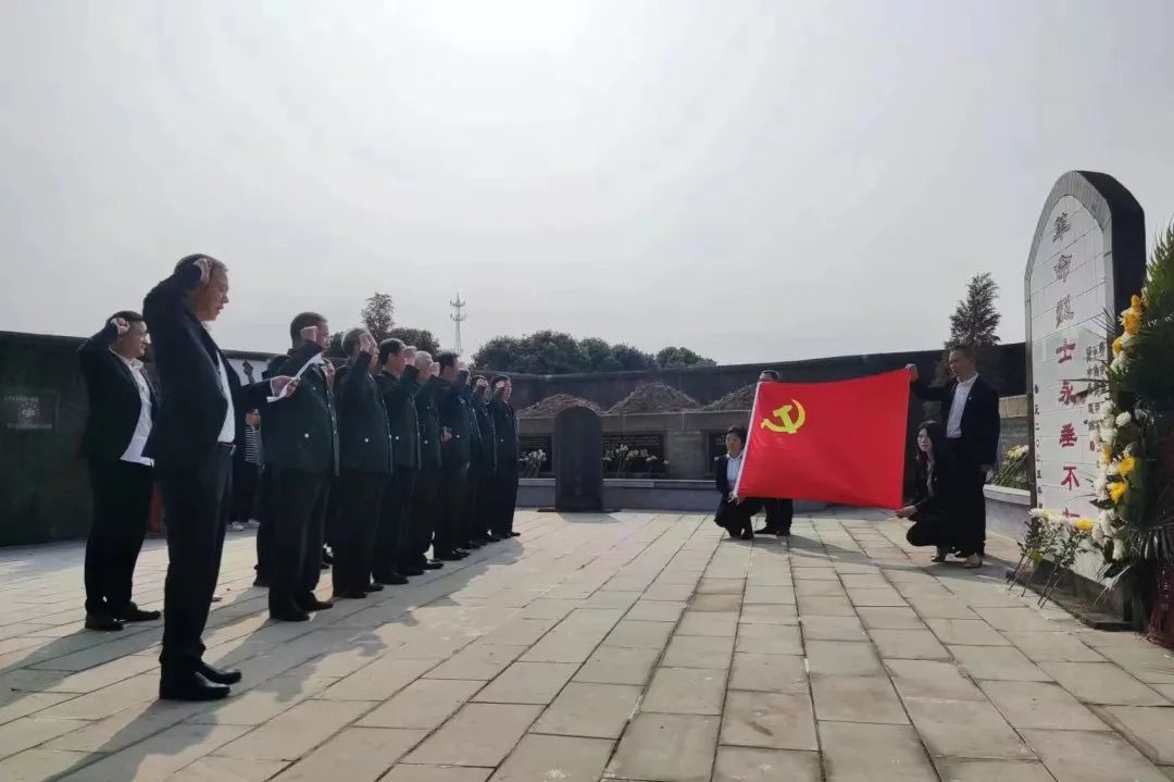 4月4日,县民政局组织机关支部和殡仪馆支部20多名党员到银山镇雅歌台烈士陵园,开展“缅怀革命先烈,庚续红色血脉”清明祭扫主题党日活动。在烈士墓碑前,参加活动的党员向革命烈士默哀致敬,并敬献花蓝,表达无限敬仰和哀思。活动中,大家还重温入党誓词,在铿锵誓言中进一步坚定信仰信念,强化政治担当。大家纷纷表示,在今后的工作、生活中,一定要以贯彻落实党的二十大精神为引领,进一步弘扬革命传统、赓续红色血脉,立足本职,开拓创新,为全县的民政事业发展贡献自己的力量。