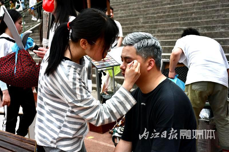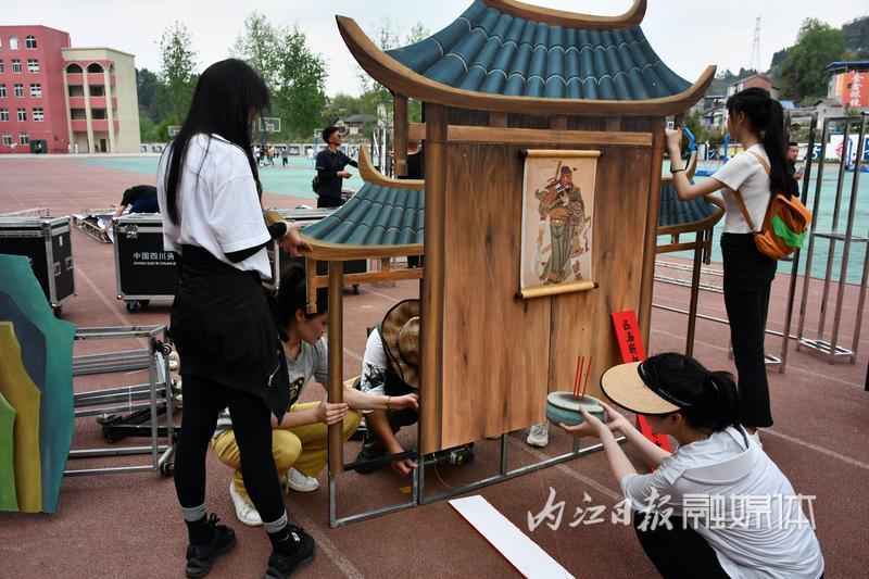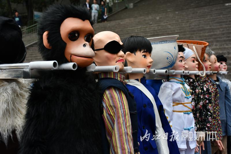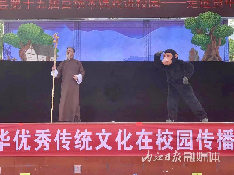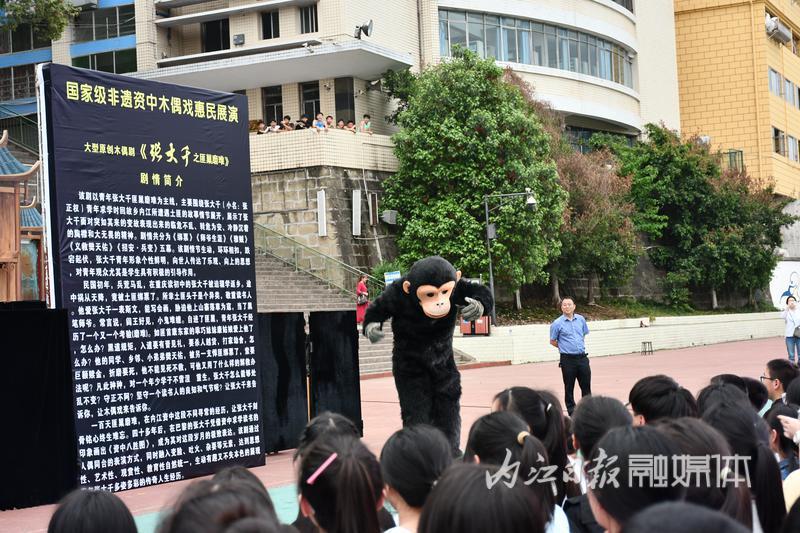 4月13日,资中县第十五届百场木偶戏进校园活动走进球溪中学,大型原创木偶剧《张大千之匪巢磨难》在校园内上演。