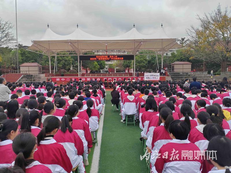 在资中二中操场上,2023“阅享新时代”中文演讲比赛决赛开赛,经过前期的初赛,来自资中二中初二年级的15名选手参加决赛。比赛过程中,参赛选手按抽签顺序依次出场,通过饱含激情的演讲,赢得台下观众和评委们的一致好评,最终评选出本次比赛的一、二、三等奖和优秀奖。此次演讲比赛,充分激发和调动了青少年热爱读书的激情和热情,形成“勤学、善思、笃行”的良好风尚。