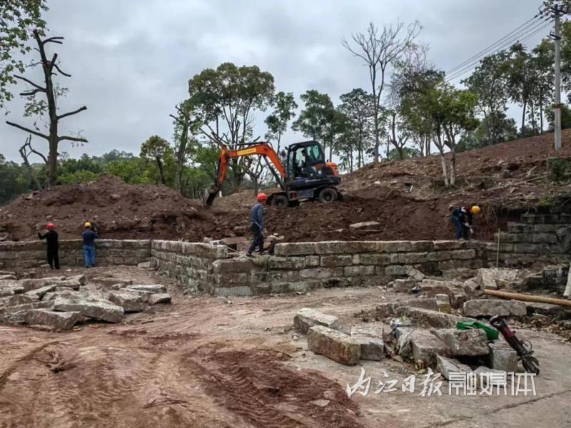 作为资中古城核心区AAAA级景区建设的核心项目之一,也是资中县2023年度民生实事项目之一,资中县重龙山生态修复建设项目自今年2月启动以来,备受资中人民关注。目前,整个工程有序推进,已完成种植土回填和部分绿化工作;倚虹长廊、百坡亭、归云亭主体修建完成;厕所基础开挖,正在进行厕所主体、道路、特色梯步修建及分区绿化。