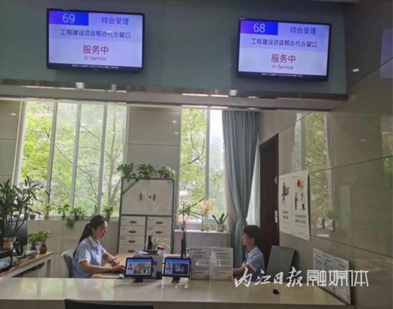 近日,资中县政务服务大厅新增了两个“资中县工程建设项目审批帮办代办窗口”,两名工作人员随时待命,为工程项目“一站式”解决审批流程。