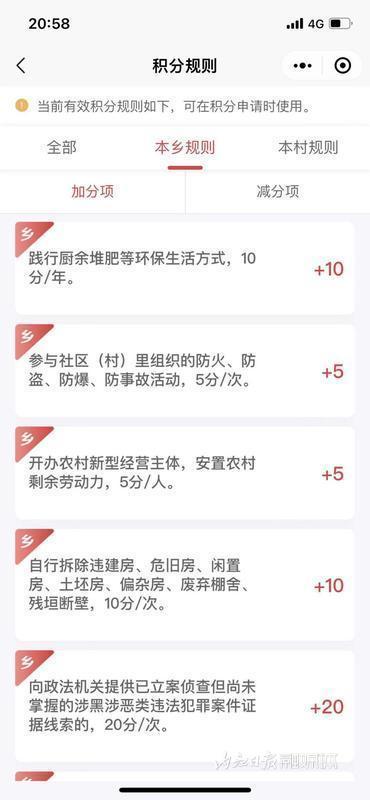 “积分还与居民荣誉、信誉等挂钩,作为评优依据,排名靠前的居民,可在‘五好家庭’‘十星级文明户’‘道德模范’等先进典型评选中被优先推荐,有效实现了乡风文明建设的正向引导。”刘惠表示。