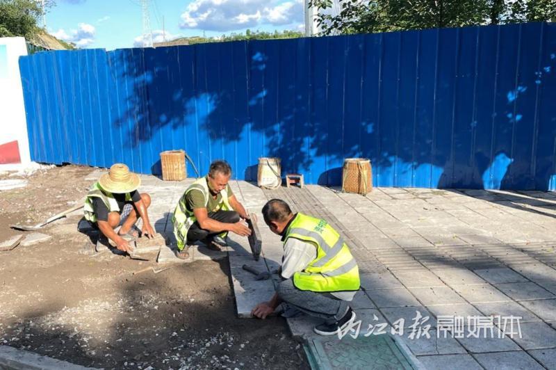 近日,资中县和鸣东街热闹非凡,身穿绿马甲的工作人员在绿化带清理杂草、修剪草坪;人行道上,工人们为行道树的树池补植麦冬,一系列工作忙碌而有序地开展。在凤翔中路,市政工人正在修补该区域街面的破损地砖。以前,这片区域人行道地砖出现了多处破损和空缺,影响市容市貌,给群众出行带来不便。