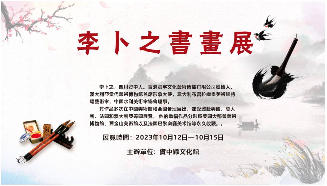 国庆双节刚过,资中人民又迎来了文艺喜讯:著名资中籍书画家李卜之先生书画展即将在资中县文化馆开展。