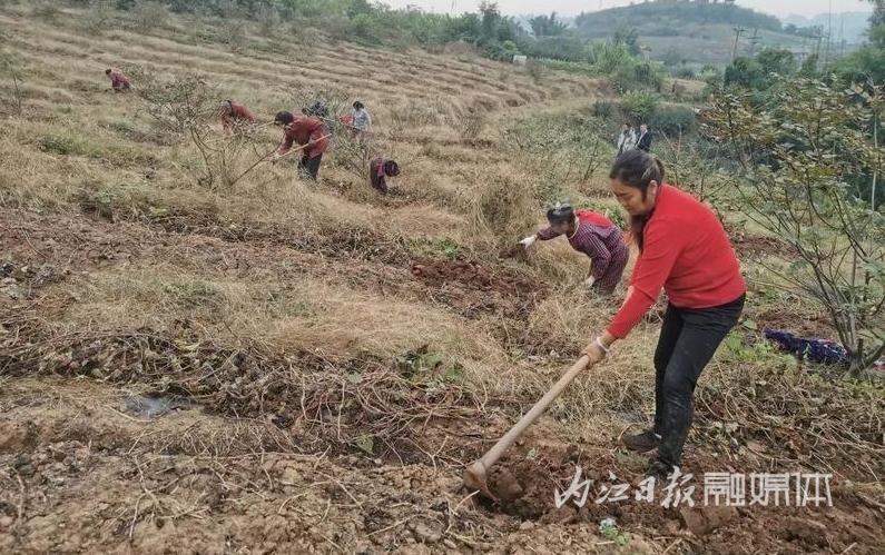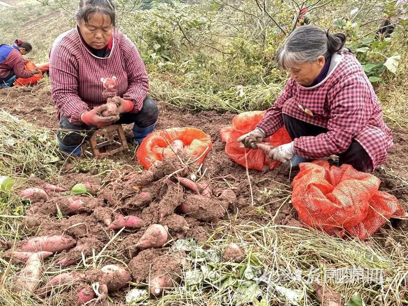 初冬时节,在资中县银山镇六角嘴村吴茱萸种植园内,30多名村民热火朝天地挖红薯,刚出土的红薯个大饱满。今年的“西瓜红”红薯产量高、品质好,村民们脸上洋溢着丰收的喜悦。
