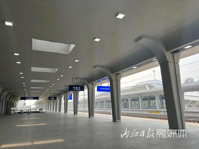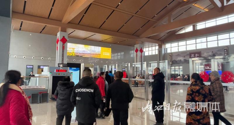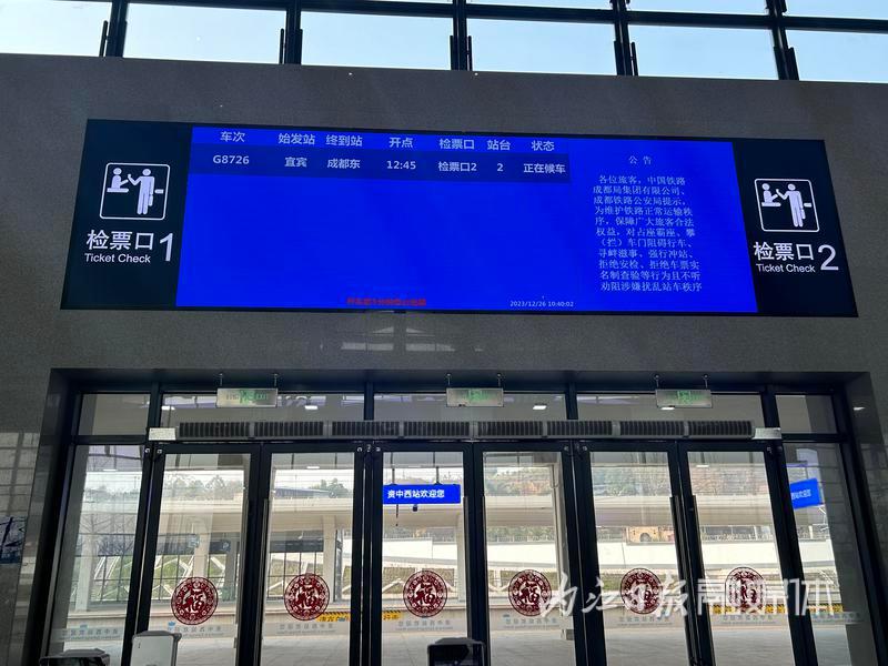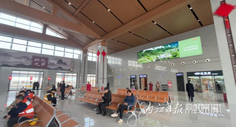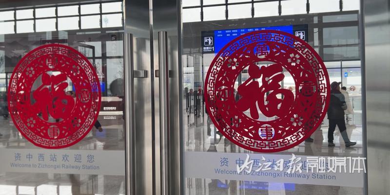 记者走进资中西站看到,建筑十分大气,大厅通透明亮,资中苌弘故里的元素与候车厅有机融合,红彤彤的中国结和窗花,让资中西站有了浓厚的迎新年氛围。