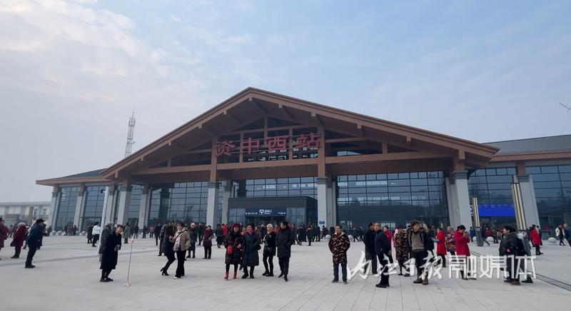 “娃娃以后回家好方便哦!”“以后坐车去天府机场逛一圈,晚上又回来。”……村民们对资中西站开通热烈讨论着,还有不少人用手机在站前广场拍视频。