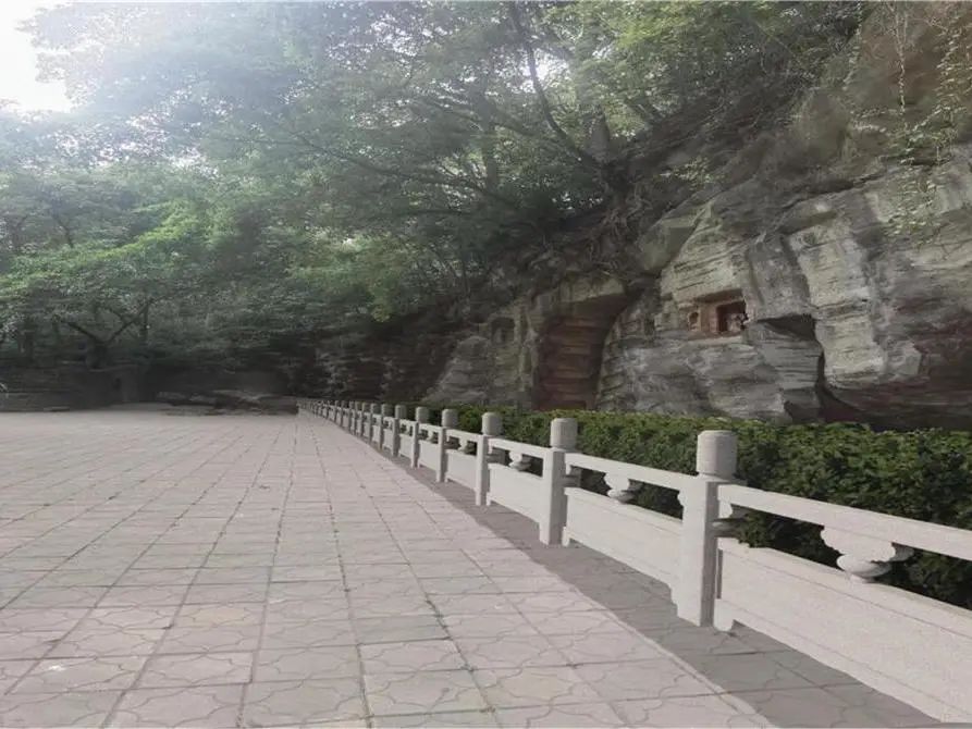 重龙山摩崖造像始凿于隋唐年间,共160龛,1648尊,造像内容丰富,雕刻精美,特色显著,于2019年10月7日入选第八批全国重点文物保护单位名单。但是重龙山摩崖造像君子泉处防水护栏多处损塌,池内污圬、杂质枯叶沉积,防护铁栏锈迹斑斑,护栏上挂满信徒许愿条,与周边环境极不协调,存在脏乱差的现象。