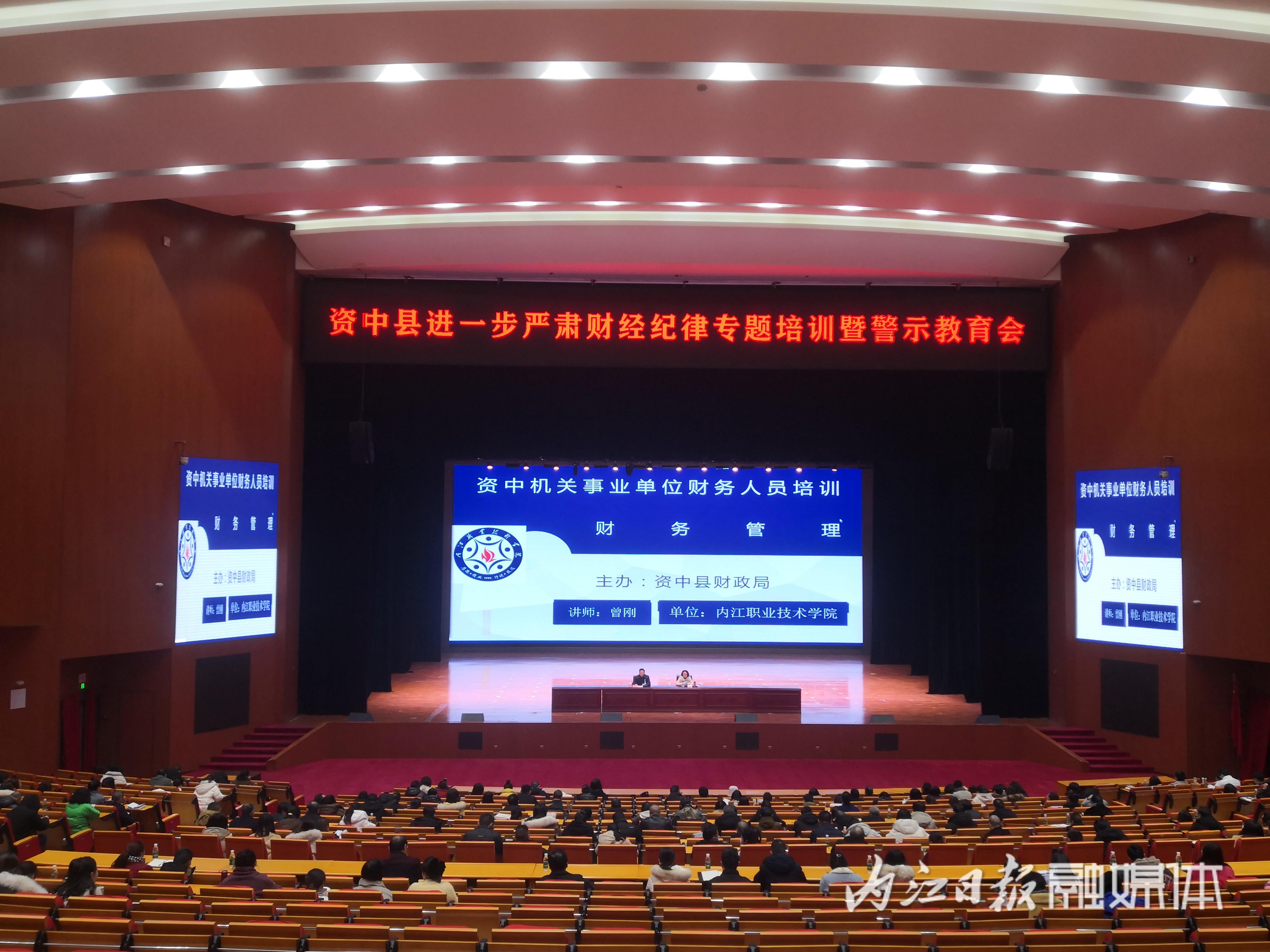 1月29日至31日,资中县进一步严肃财经纪律专题培训暨警示教育会在苌弘大剧院召开。全县22个镇、171个县级预算单位主要负责人、分管财务负责人及财务负责人约600人参加会议。