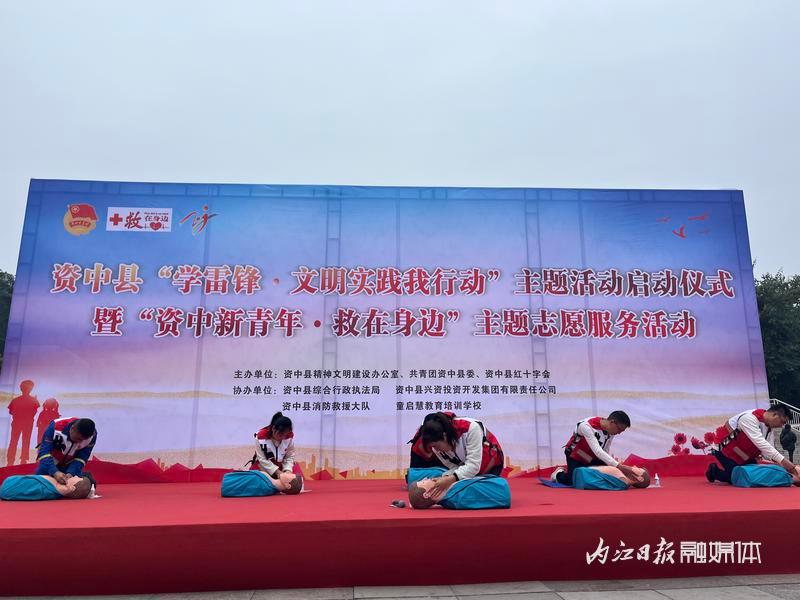 3月5日,资中县2024年“学雷锋·文明实践我行动”主题活动启动仪式暨“资中县新青年·救在身边”主题志愿服务活动,在县政府广场举行。文化文艺志愿服务队、法律志愿服务队、青年志愿服务队等10支志愿服务队,共计200余名志愿者参加启动仪式。