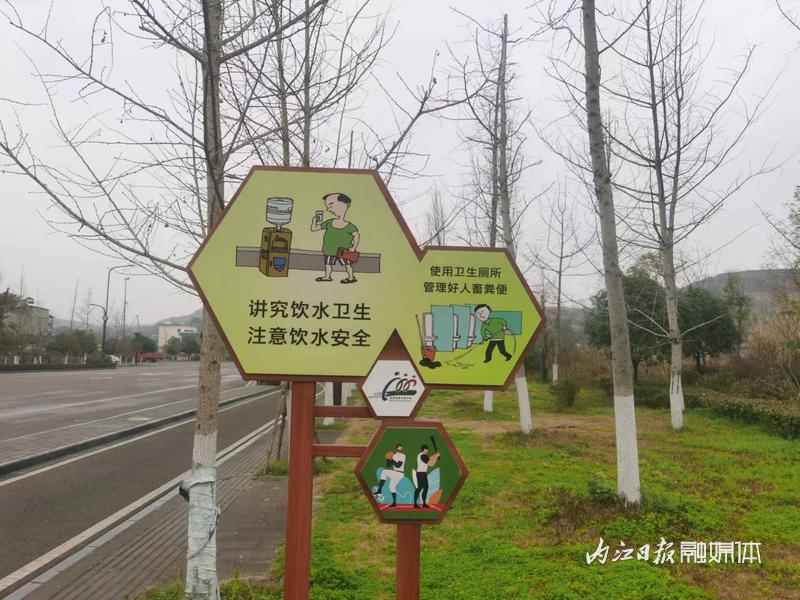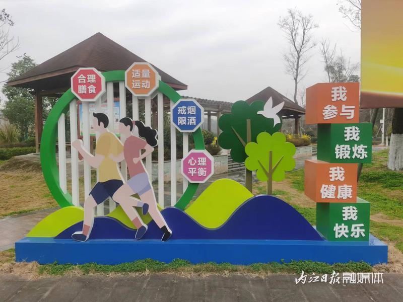 3月7日,记者在资中县重龙镇资州大道东段看到,磐石绿道沿途都设有鲜明的健康提示牌。
