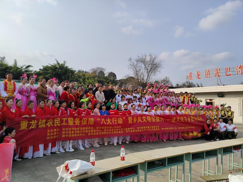 春节期间,资中县文广旅局、各镇综合文化站开展送文艺下乡慰问演出活动。开展“我们的节日·春节”惠民演出、送文化到基层慰问演出22场次。并组织农民工及留守家人集中收看春晚,感受党和政府的关心关怀,极大地丰富农民工的精神文化生活。