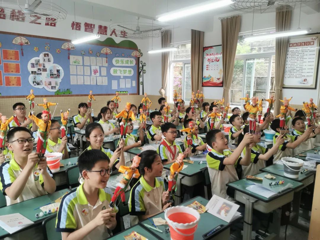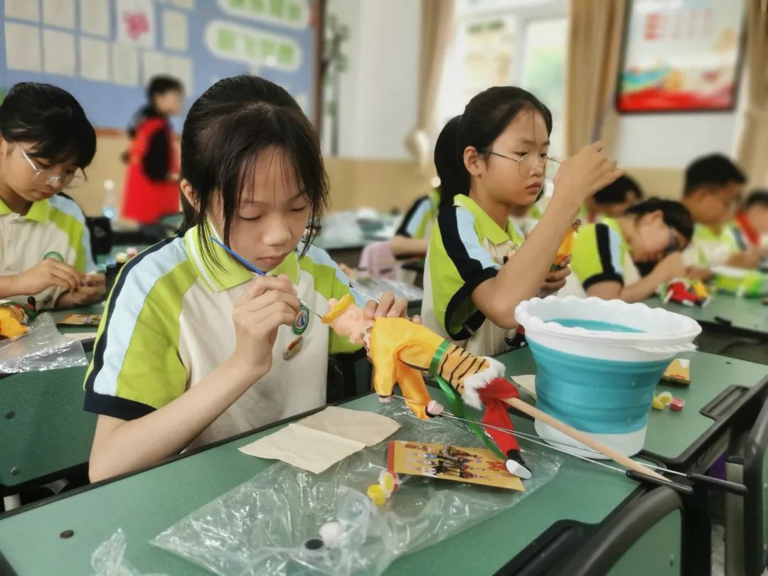 课堂上,资中县木偶剧团中型杖头木偶制作工艺传承人给同学们详细讲解中型杖头木偶的头部、身架、手节脚肢、命杆、服饰的制作工艺,通过塑型、打磨、抛光、上色、化妆、制作头饰等系列工序将木偶组装完成,同学们对木偶制作表现出极其浓厚的兴趣,纷纷表示要传承和保护珍贵的文化遗产。