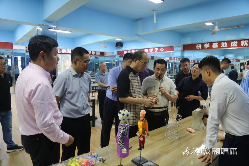 随后,调研组一行来到资中中型杖头木偶研学实践基地参观了中型杖头木偶戏传习所、中型杖头木偶制作工艺室、中型杖头木偶戏陈列室及资中木偶剧团办公阵地,观看木偶表演川剧《变脸》,剧团主要负责人介绍了剧团在非遗普及、人才培养、剧目编排、市场开发等方面所做的努力,对剧团全面工作进行了汇报。调研组一行对剧团工作表示肯定,希望剧团为传统文化传承与保护、艺术创新与发展作出更大贡献。