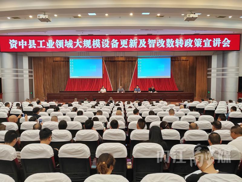 5月21日,资中县工业领域大规模设备更新及智改数转政策宣讲会,在县政府大礼堂召开。内江市经信局相关部门负责人,资中县经科局负责人,内江本地数字化转型服务商代表,全县规上工业企业、升规后备企业、砖瓦行业企业和碎石加工企业主要负责人及经办人员,22个镇分管工业的负责人及经办人员参加会议。