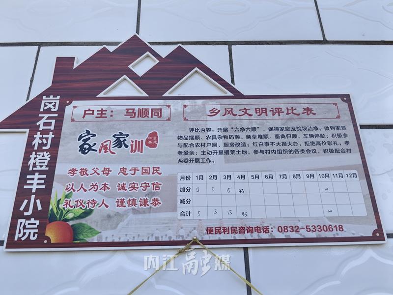 村党总支委员吴静告诉记者,马顺同家门前展示的积分,来自岗石村从2023年12月开始实行的乡风文明建设积分制。他们家的庭院总是十分整洁,他也不焚烧秸秆,支持村里的各项工作,这些成为他加分的重要因素。今年4月,他的得分排在全村前三名,因此获得流动红旗。